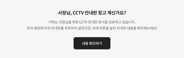 매장을 운영하는 사장님이라면 업장 곳곳에 CCTV를 설치하셨을 텐데요. 혹시나 하는 마음에 들여놨지만 생각만큼 자주 들여다보지 않는 CCTV, 의외로 꼼꼼한 관리가 필요하다는 것 알고 계신가요? 매장 관리 올인원 솔루션 키퍼가 알려드리는 ‘CCTV 관리 체크리스트’를 통해 우리 매장 CCTV가 법에 맞게 잘 관리되고 있는지 한번 살펴보세요!