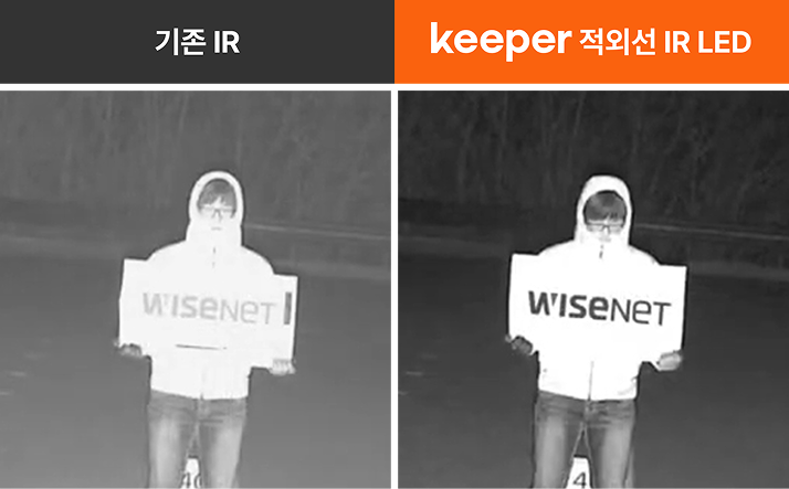 타사 대비 2배 높은 400만 화소의 QHD CCTV 설치를 제공합니다. 또한 적외선 IR LED(적외선 발광다이오드)와 자체 노이즈 저감기술(SSNR) 적용으로 야간에도 30m까지 또렷한 화질을 유지합니다. 광역역광보정기술(WDR)은 어두운 실내와 밝은 통창 앞 구분없이 명확한 영상을 제공하며,
