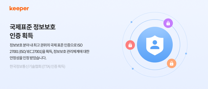키퍼(Keeper)는 정보보호 분야 최고 권위의 국제 표준 인증 'ISO/IEC 27001'을 획득했습니다. 이는 키퍼의 정보보호 시스템 전체가 국제 기준에 따라 철저히 관리되고 있음을 객관적으로 증명합니다. 덕분에 사장님께서는 키퍼의 높은 보안 수준과 안정적인 서비스를 믿고, 해킹 걱정 없이 안심하며 매장 운영에 집중하실 수 있습니다.