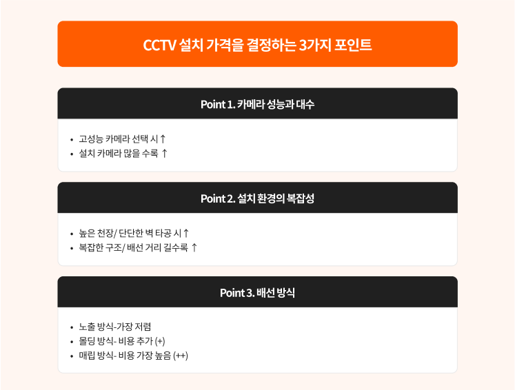 최종 CCTV 설치 가격에 영향을 주는 3가지 중요한 포인트를 지금부터 하나씩 자세히 살펴볼게요.