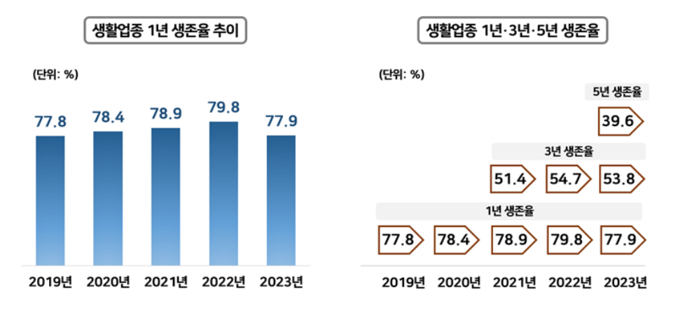 “요즘 창업 어때?"라는 질문을 받으면 많은 예비 창업자가 설렘과 동시에 깊은 고민에 빠집니다. 내가 잘하고 좋아하는 일로 멋지게 성공하고 싶다는 꿈과, 막상 시작했을 때 시장의 반응이 냉담하면 어쩌나 하는 불안이 공존하기 때문이죠. 실제로 이런 불안은 단순한 기우가 아닙니다. 국세청 국세통계포털에 따르면, 3년 생존율은 2023년 기준 53.8%에 불과합니다. 창업 후 3년 안에 10곳 중 5곳 이상이 문을 닫는 셈이죠.